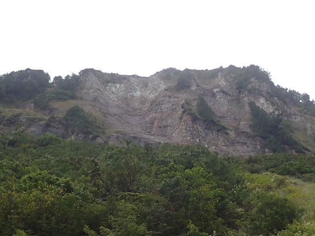 さて、仙人岩である。仙人壁とも称されるこの壁は、良く知られているものの登っている人は多くない。この上部のオンボロっぽさを醸し出す性状からするとそれも頷ける。ラインは一目瞭然で最も硬い面積が大きそうなスラブ状凹角である。50mで4Pくらいまでは支点は取りづらいものの許容範囲の脆さで快適なスラブ登りを味わえる。ビレイポイントも丹念に探せばがっちりとしたものが得られるだろう。問題は5P目の緑色ゾーンから。ここはどの岩も崩壊しており、通常のクライミングのように岩を引っ張ることは不可である。よって、四肢のすべてを駆使しながら岩を押えるように登る。当然のことながら支点は取れないので登りは慎重を期する。登りでもロープを手繰っても落石が発生するので、フォールラインを外したビレイポイントにしなければビレイヤーが大変なことになる。トップアウトする6Pも傾斜の強い草付きから岩へと移るのが悪い。ひーひー言いながら辿り着いた頂上では大畠谷の絶景が堪能できる。