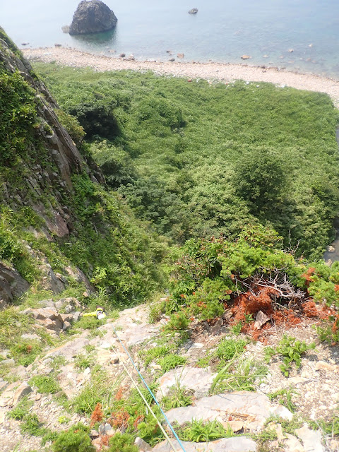 しかし、決して支流に情報が無いわけではない。登山大系にはしっかりと遡行図があるし内容も割合細かく示されている。そんな中でヒアケ谷は登山道に出るわけでもないので最もマイナーと言える。登山大系にもあっさりとした基準であるが故に興味を惹かないのかもしれない。しかーし、遡行内容はちゃんと面白い。出合いから1500m二俣までは立派な滝やナメが連続して心躍る。関門状の20m滝はクライミングも楽しめる。その後現れるシャクナゲの滝は正に剛瀑でこれを見るだけで訪れる価値がある。筆者らは1500mを左俣に進んだが、こちらは難しいところは無いもののナメ状でミスの許されない滝が1つあった。稜線から200m以上手前から笹薮の存在感が増してくる。苦しい笹薮漕ぎを経て辿り着く三角点ピークから眺める景色は格別だ。ホウガ谷への下降となるが上部はやはり笹と戯れる。下部は難しい下降は無い。ホウガ谷と並行する林道は現存しないので注意されたし。